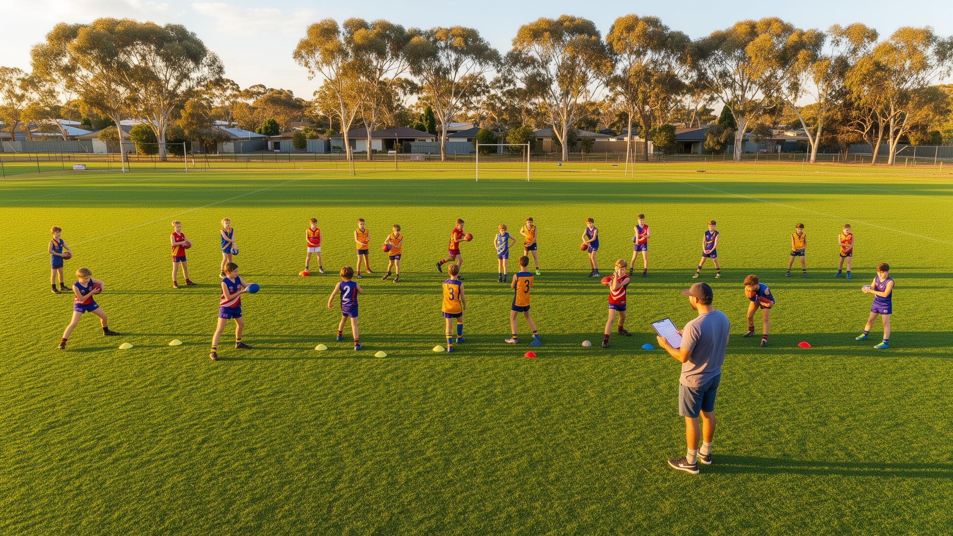 AFL-structured plans with warm-up, skill drills, game scenarios, and cool-down — built for your age group and this week's focus.